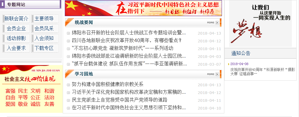 5月1日,科源新聯(lián)會線上平臺經(jīng)過2個月的打造正式上線運(yùn)行。該平臺的上線標(biāo)志著四川首家以企業(yè)為主題成立的新聯(lián)會組織又一次走在了時代的前沿,這是首個以新的社會階層人士為主題的官網(wǎng)平臺,平臺以“新聯(lián)會介紹、資訊、工作動態(tài)、會員企業(yè)及會員風(fēng)采展示、活動開展、精準(zhǔn)扶貧等”版塊,推送科源新階人士創(chuàng)新事跡、精準(zhǔn)扶貧、企業(yè)創(chuàng)新發(fā)展成果等系列內(nèi)容,最終通過線上線下對新聯(lián)會工作的組織開展、會員資源的互助共享以及社會效應(yīng)的多方面宣傳,加強(qiáng)新的社會階層人士的凝聚力。通過開展創(chuàng)新性的各類活動,促進(jìn)新聯(lián)會健康持續(xù)發(fā)展,進(jìn)而促進(jìn)統(tǒng)戰(zhàn)工作。