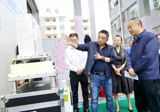 同心創(chuàng)新創(chuàng)業(yè)示范基地入孵企業(yè)比萊科技向張明局長介紹成果產(chǎn)品